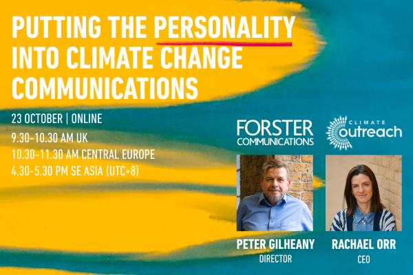 Forster has teamed up with the UK charity helping organisations tell more compelling climate stories, to share practical insights from their latest research into public attitudes. The focus is on helping you communicate around climate and nature issues in a way that really resonates with audiences that matter, whether you’re working in the UK or globally. Pick up actionable tools and ideas you can use straight away.